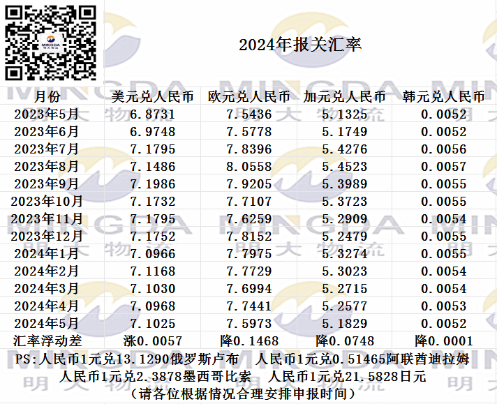 2024年5月海关申报汇率