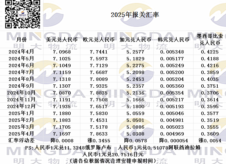 2025年4月海关申报汇率
